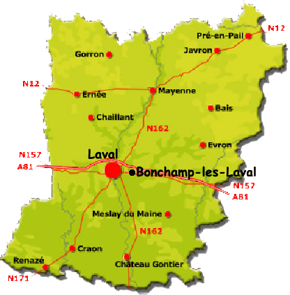 Localisation de Bonchamp-les-Laval en Mayenne.